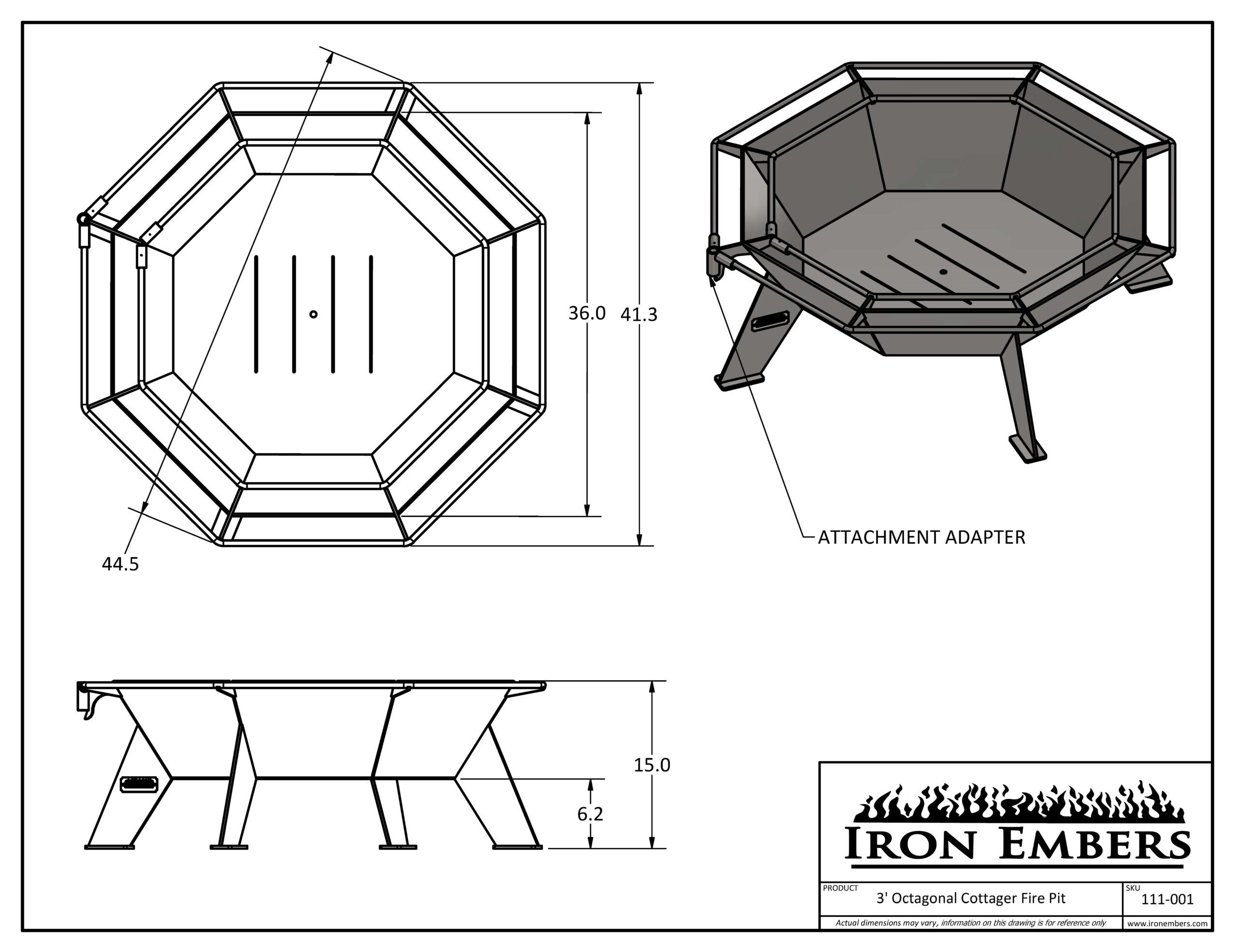 3 Octagonal Cottager Outdoor Fire Pit - Iron Embers
